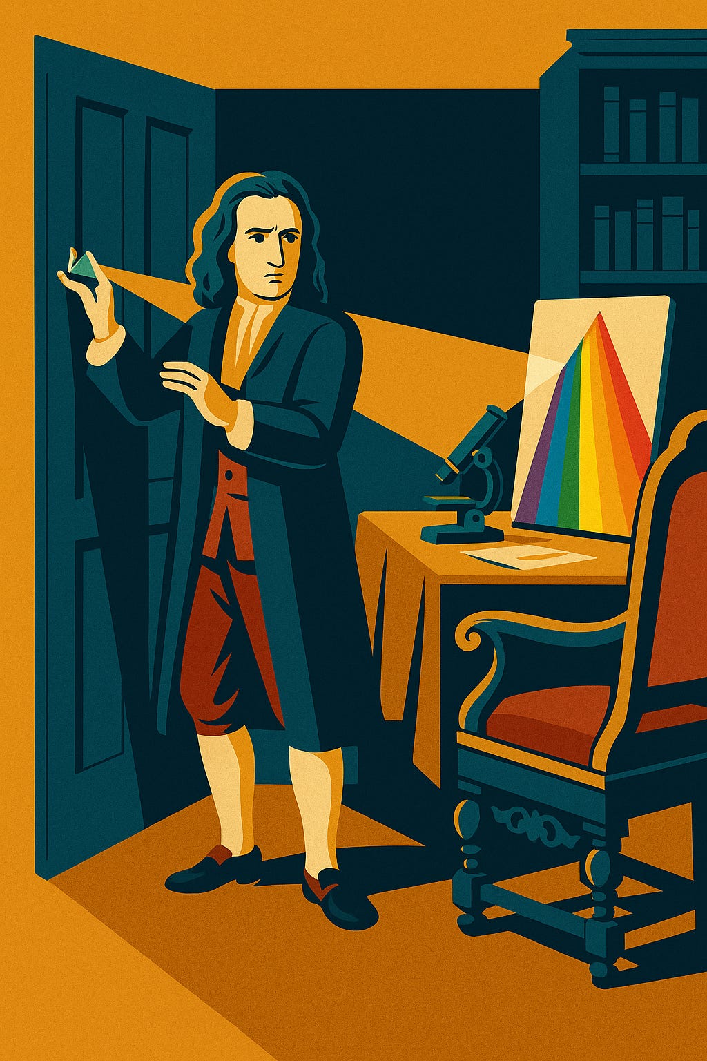 Nun hatte Newton das Weltbild seiner Zeitgenossen schon auf den Kopf gestellt, indem er über zweitausend Jahre lang gelehrte Ansichten kurzerhand für falsch erklärte – und das auch noch beweisen konnte: Farben waren im Licht enthalten – genau genommen, besteht Licht aus Farben.