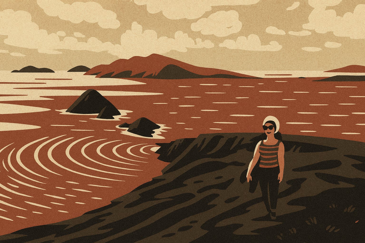 Meereswellen breiten sich nach einem engen Durchlass kreisförmig aus. Lichtwellen auch. (5Sigma, ChatGPT)